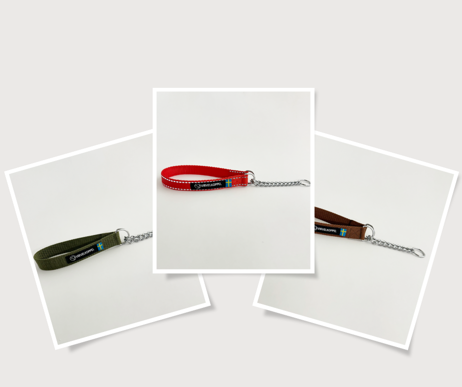 Jetzt kannst du dein Virvelkoppel mit einem Halbwürgehalsband in verschiedenen Farben und Größen kombinieren.
