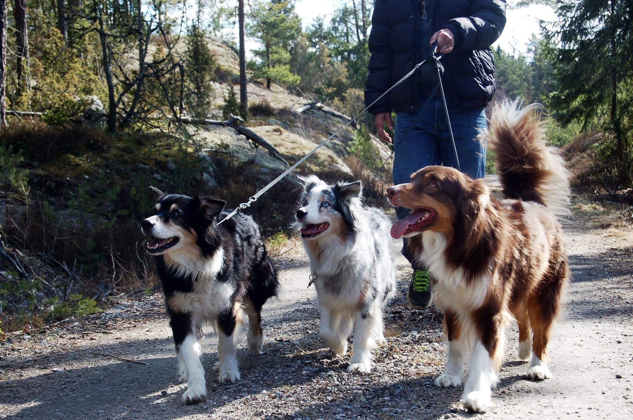 Fungerar mycket bra med tre rörliga hundar på promenad.