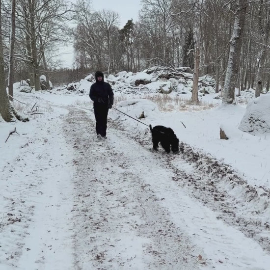 Enkelkoppel med expanderband och fodrat fleecehandtag. Ett extra handtag i reflex när man vill ha hunden nära. Längd 190 - 300 cm. Hake 8,5 x 2,5 cm.